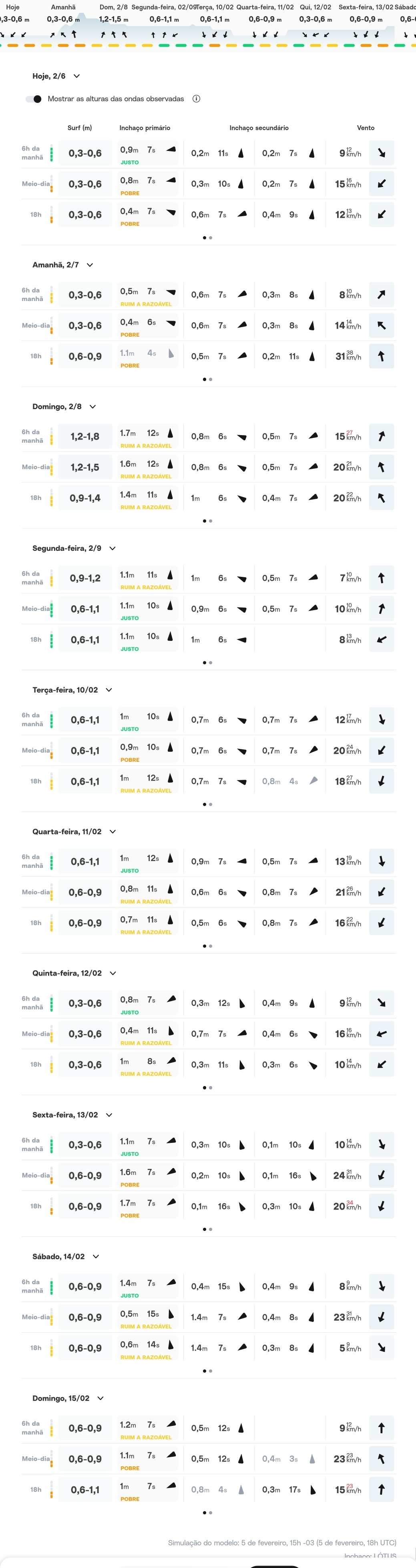 PERÍODO: O período se encontra na casa dos 6 a 7 segundos e a consistência marítima está fraca.