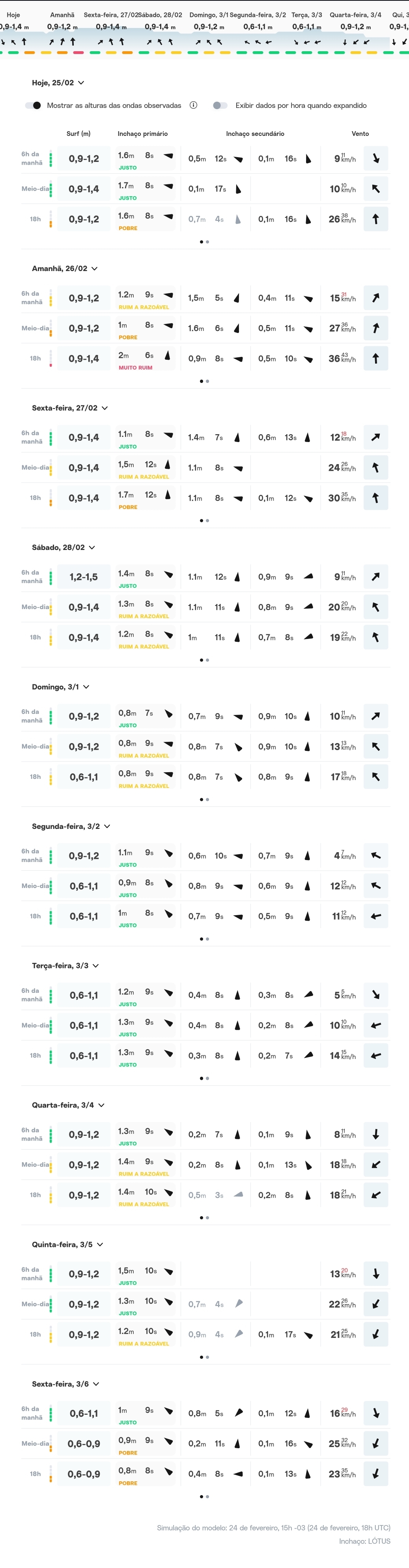 PERÍODO: O período está na casa dos 8 a 9 segundos e a consistência marítima está moderada/forte.
