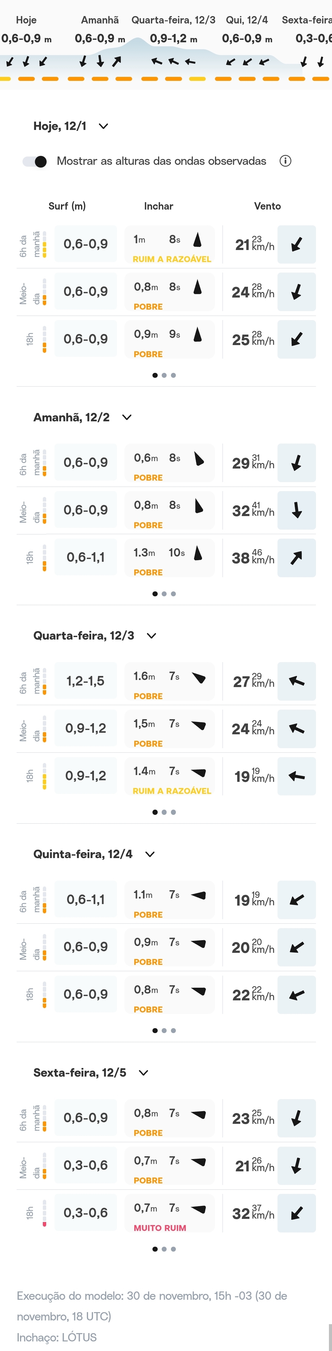 COMENTÁRIOS E PREVISÃO DO MAR: As frentes frias estão fracas e não estão resultando em formação de swell significativo. Os modelos indicam ondas baixas nos próximos dias e o mar ficará nesse patamar. No momento sem alertas!