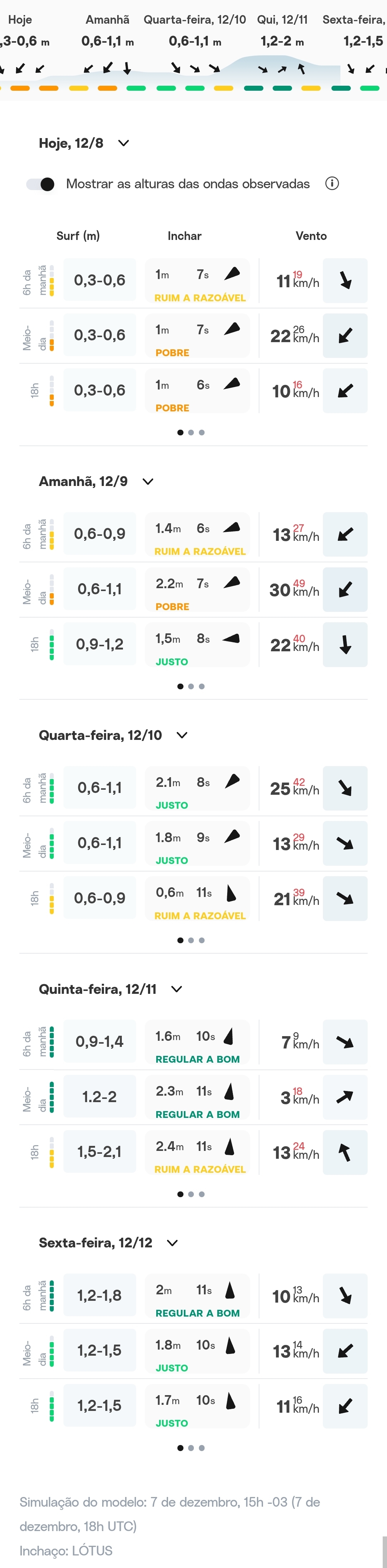 PERÍODO: O período está na casa dos 7 segundos e a consistência marítima está fraca.
