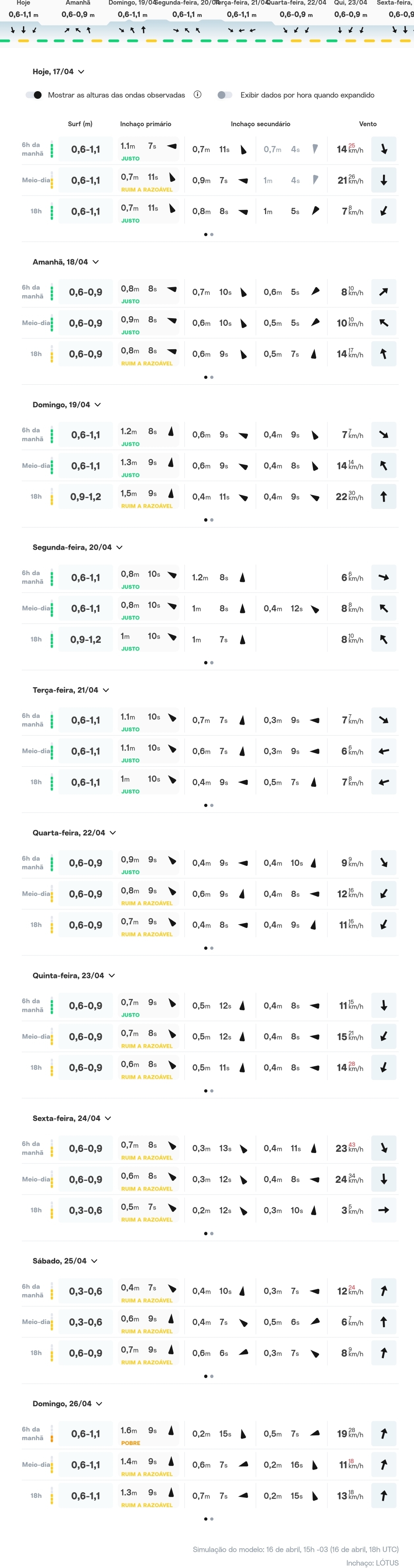 ONDULAÇÃO: A ondulação vai predominar sudeste com influência de leste.