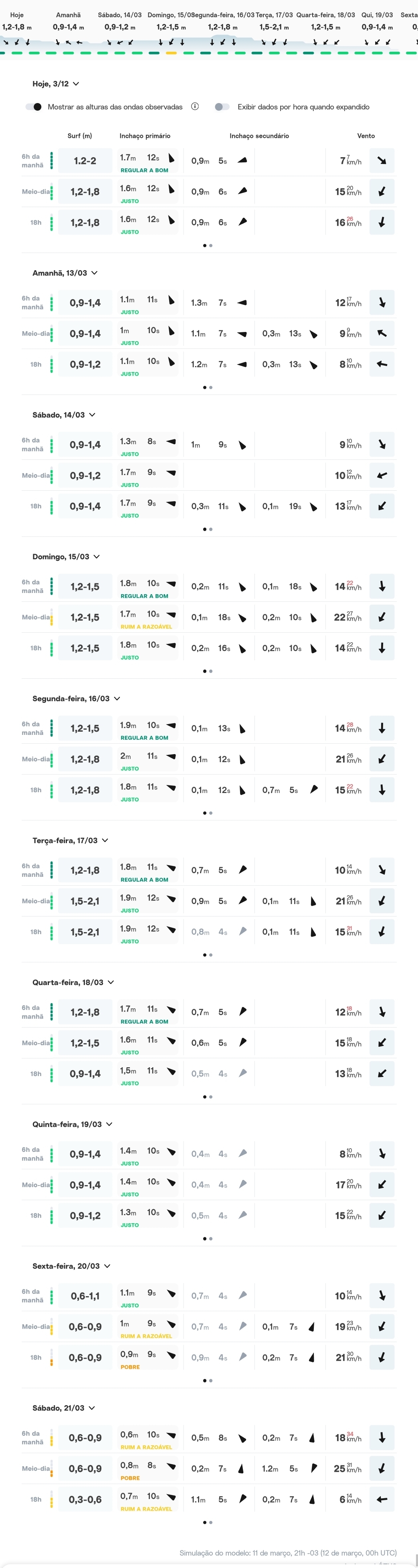 VENTOS: (12/03) Vento soprando de nordeste e vai continuar com variações. Amanhã volta pra sudeste/leste....