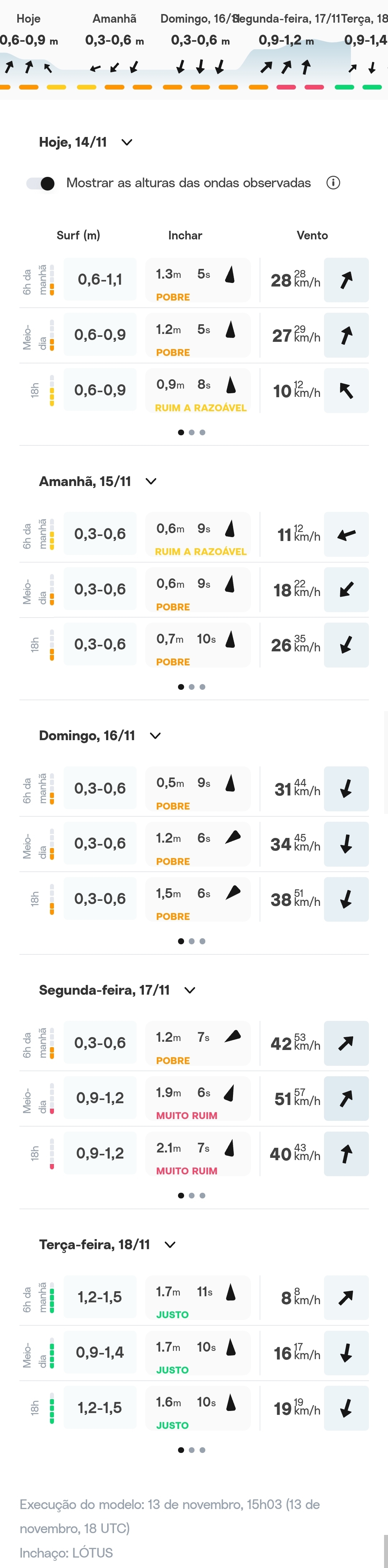 COMENTÁRIOS E PREVISÃO DO MAR: As previsões não indicam nenhuma ondulação significativa nos próximos dias e vai ficar no patamar baixo. A consistência marítima vai ficar fraca e a ondulação vai ficar misturada entre sul a sudeste virando para leste/nordeste no domingo.