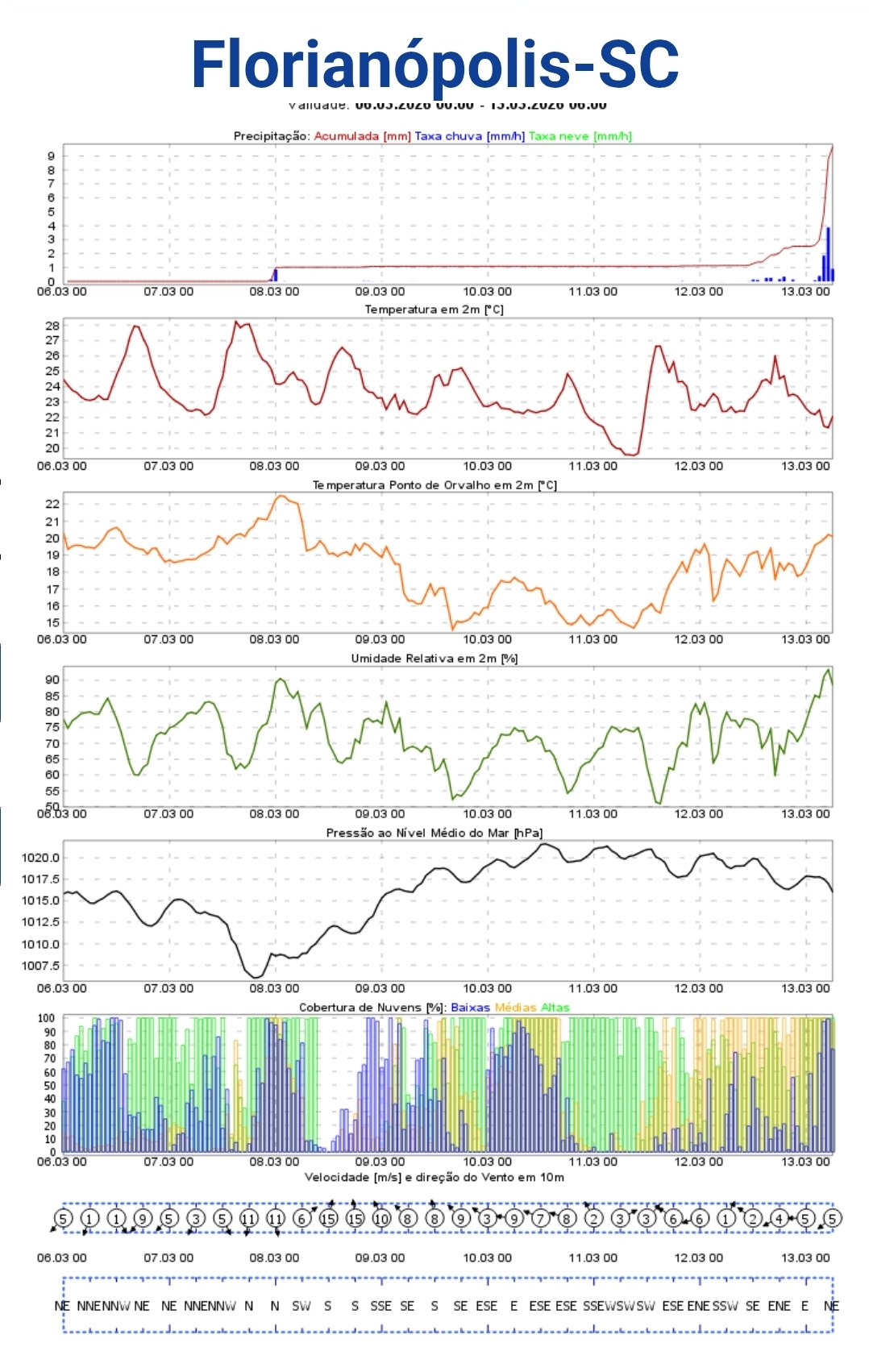 Ventos soprando do quadrante norte a nordeste até sábado e vai trocar de direção no domingo. O vento vai soprar entre sul/sudeste.