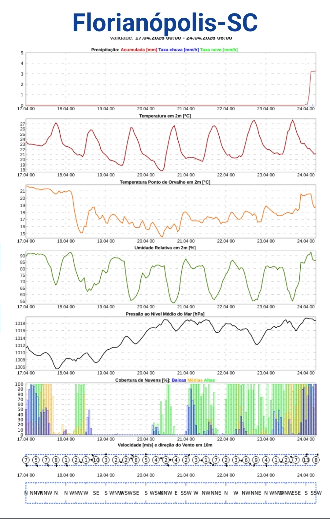 Os modelos indicam nebulosidade no decorrer desta sexta-feira, aos poucos vai se dissipar e o céu ficará parcialmente nublado com sol. Os ventos vão soprar dentro do quadrante norte a nordeste e teremos efeito pré-frontal.