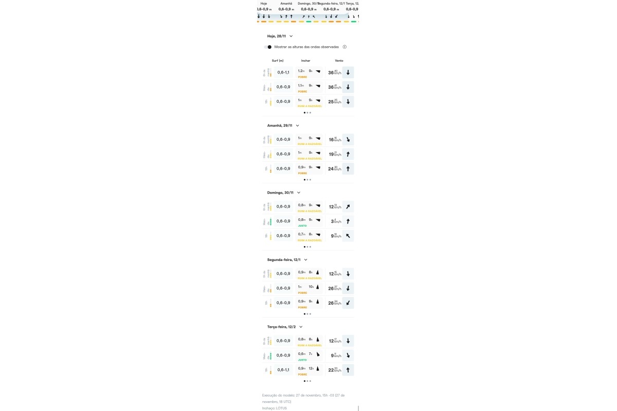 VENTOS: (28/11) Os ventos vão soprar do quadrante norte a nordeste e vai embalar nos próximos dias. Rajadas entre moderada a forte devido ao pré-frontal.